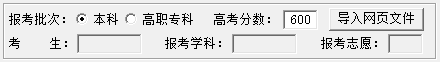 使用時只需選擇‘報考批次’、輸入分數(shù)、導入‘網(wǎng)頁文件(考生網(wǎng)上提交志愿后導出的.html文件)’即可。